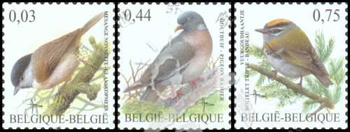 鸟类,沼泽山雀、斑尾林鸽及戴菊鸟普票3全