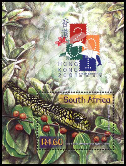 蛇年生肖,非洲树蛇,2001年香港邮展加盖小型张