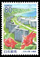 日本冲绳满市摩文仁和平公园内的和平纪念碑,红色芙蓉花等1全(我社已售缺)