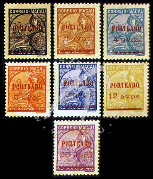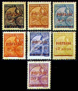 邮票介绍:“航海纪念碑”加盖改值欠资邮票 7全