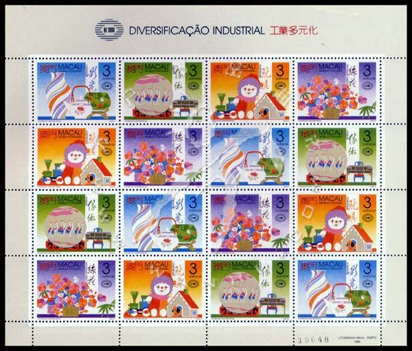 工业多元化(彩瓷、家私、玩具、丝花)小版张(含4套共16票)SH