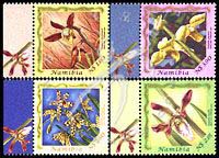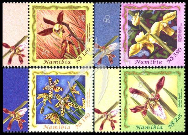 中国世界邮展,兰花:非洲豹纹兰及美冠兰等菱形票4全