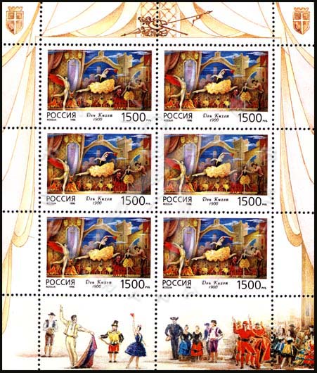 芭蕾舞系列五,舞蹈指导家亚力山大·戈尔斯基诞生125周年,其编导的芭蕾舞《堂吉诃德》小版张(6票)
