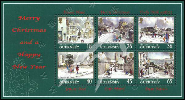 圣诞节,雪中的教堂建筑及儿童等小全张