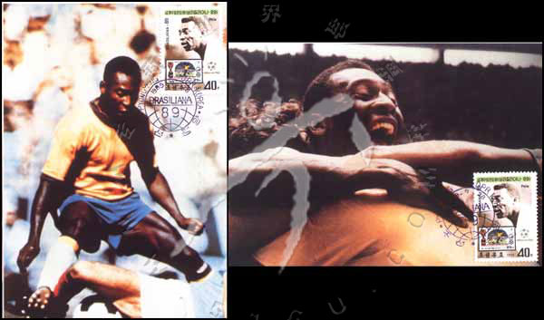 巴西1989世界邮展,球王贝利摄影极限片2全