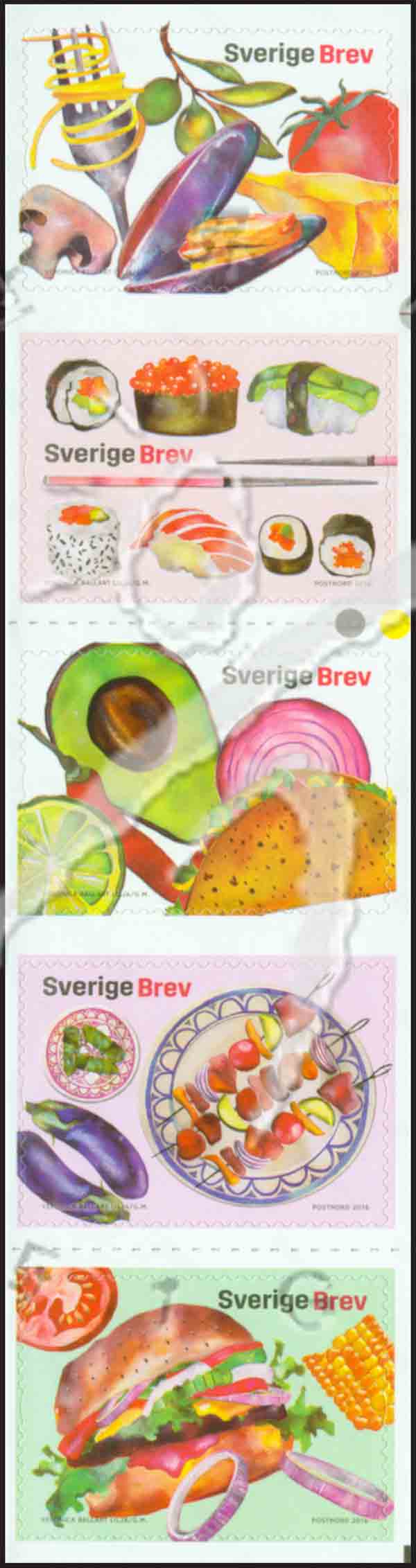 北欧美食系列二,海鲜、寿司、水果、烧烤及汉堡等不干胶自贴票5联
