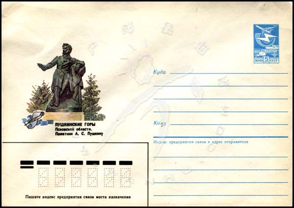 邮票介绍:普斯科夫州的诗人普希金雕塑邮资封1全