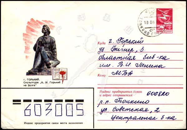 高尔基市伏尔加河畔的高尔基塑像实寄封1枚