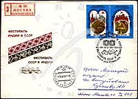 苏印联欢节,两国国旗及建筑首日实寄封1枚