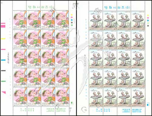卡通系列六,卡通《洞穴人》及涂口红的小女孩等2枚小版张(各20票)