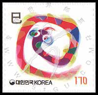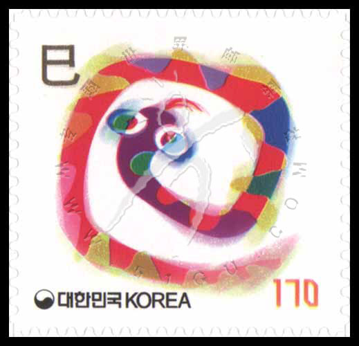 蛇年生肖,卡通蛇不干胶自贴票(世界上第一种不干胶生肖邮票)1全