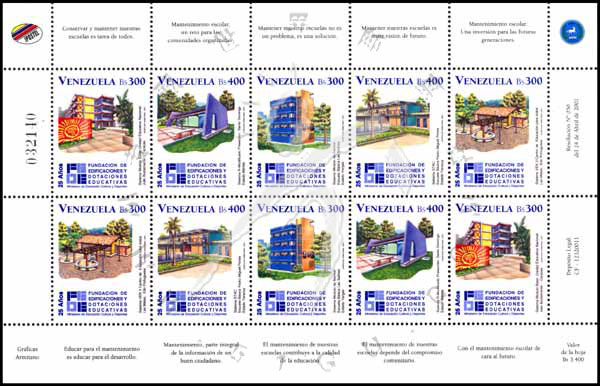 教育基金捐赠委员会成立25周年纪念,教育、文化、休闲娱乐部、建筑、绿色生命等小版张(含10票)