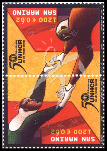 联合国高级难民署成立50周年,徽志、援手互助的难民2联