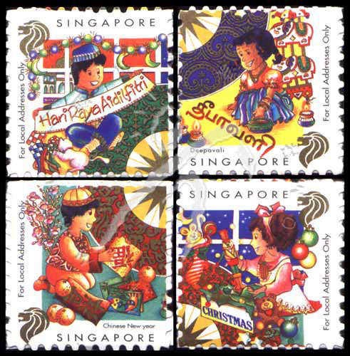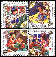 节日,中国新年、圣诞节等不干胶自贴组合票4全