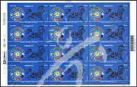 马年生肖,烫银砖雕小鞍马、十二生肖及中国地支图小版张(12票)