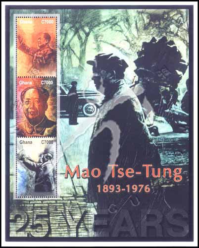 毛泽东逝世25周年,不同时期的绘画肖像小全张(3票)