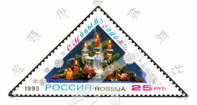 Sc#6182 圣诞节,圣诞树、蜡烛与烛台三角票25r 1枚