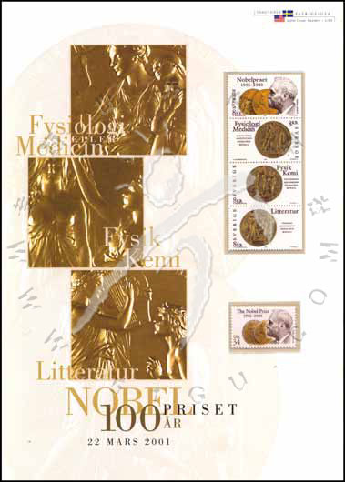 诺贝尔奖百年纪念页(含瑞典和美国两国发行的邮票)
