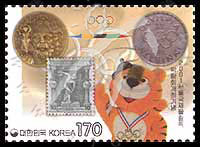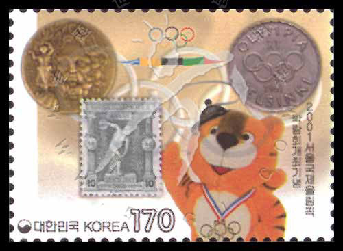 2001年汉城国际奥林匹克展览会,金牌、五环、吉祥物及世界首枚奥运邮票票中票1全