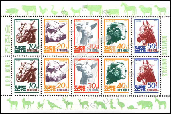 家畜,牛、猪、山羊、绵羊及马小版张(2套共10票)