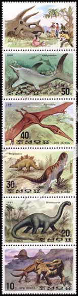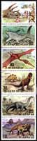 史前动物,犬颌兽、雷龙、剑龙及异特龙、翼龙及鱼龙带附票5联
