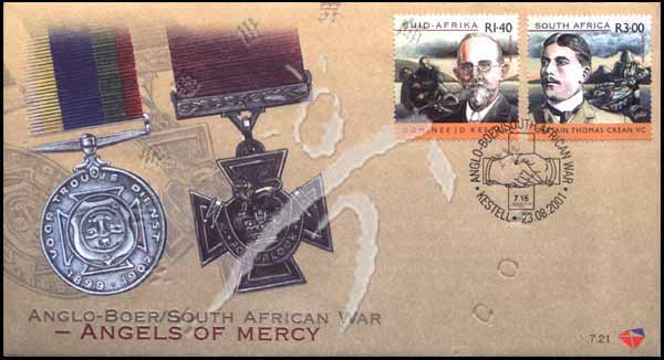 英布战争系列—仁慈的天使,随军牧师D.凯斯特尔(Dominee Kestell)、军医汤米·克林(Tommy Crean)及战争勋章2全邮票首日封