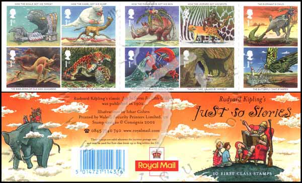1907年诺贝尔文学奖得主吉普林(Rudyard Kipling)的畅销儿童故事集《原來如此的故事》插图不干胶自贴小本票(10票,一票一个故事)