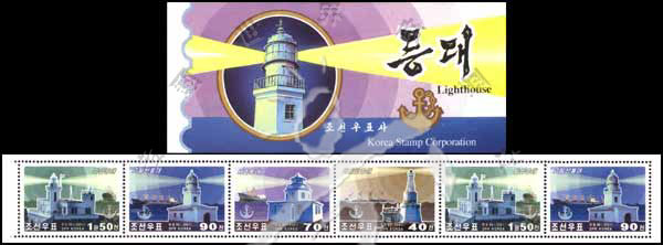 灯塔,南浦Pibaldo灯塔、咸兴Soho灯塔、清津Komalsan灯塔及Rason的Alsom灯塔小本票(6票)