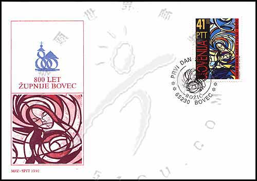 圣诞节,教堂窗户彩绘圣母子首日封1全