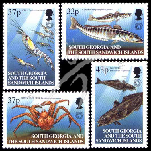 南极海洋生物资源养护委员会20周年,徽志、鱼类、小虾、螃蟹4全