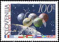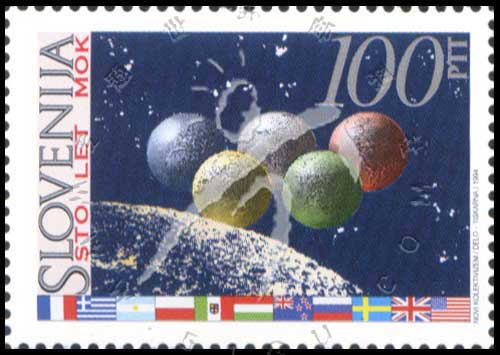 国际奥林匹克委员会成立100周年纪念,太空中的五环和国际奥委会(IOC)创始成员国国旗