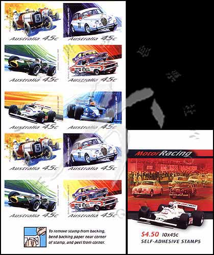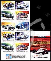 历届澳大利亚的赛车比赛的赛车,奥斯汀-7、美洲豹马克II、福特FW07、贝纳通-雷诺2001等不干胶自贴小本票(10票)(我社已售缺)