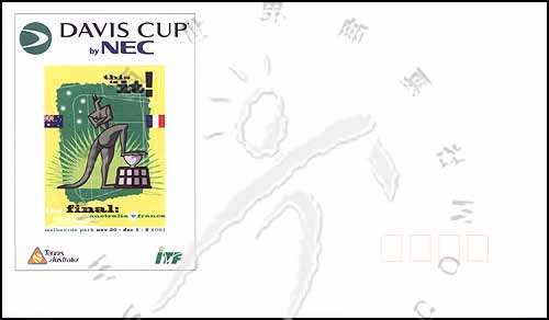 2001年戴维斯杯网球赛决赛—澳大利亚-法国,徽志、南十字星、拟人袋鼠及奖杯等纪念信封1全