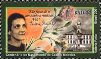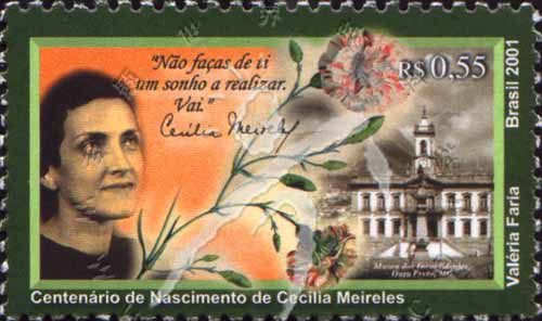 文学系列,巴西女诗人塞席丽雅·梅瑞列丝(1901-1964)诞生百年,肖像、签名、花朵及建筑等1全