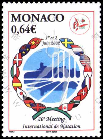 第20届国际游泳集会,徽志、参赛国国旗及游泳馆1全