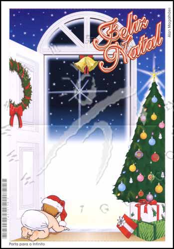 圣诞节的祝福,婴儿耶稣、圣诞树、门外夜景及文字航空邮资简1全