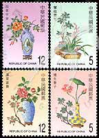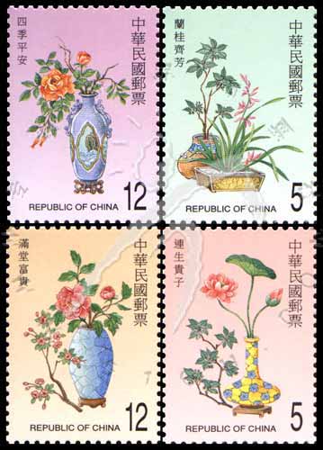 吉祥邮票系列四,连生贵子、兰桂齐芳、满堂富贵及四季平安4全