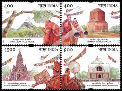 佛教节日,佛教胜地灵鹫山(佛说法处)、野鹿苑(佛初转法轮处)、菩提迦耶(佛成道处)、双林(佛涅槃处)及仪式中的僧侣等4全