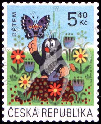 儿童系列邮票—流行捷克40年的电视卡通形象小鼹鼠,花园中的小鼹鼠和蝴蝶1全