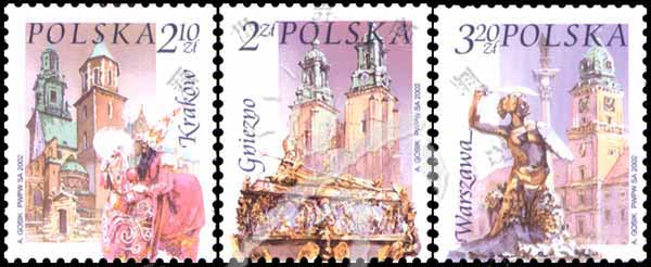 波兰城市,Gniezno大教堂、Wawel大教堂、华沙王宫和华沙的标志—美人鱼等3全