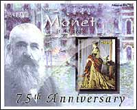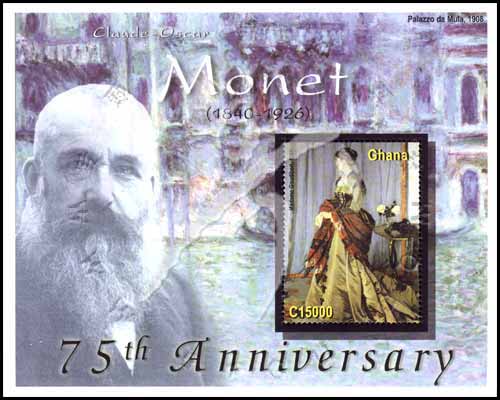 法国印象派大师莫奈逝世75周年,肖像和1868年作品《高迪伯特夫人》小型张
