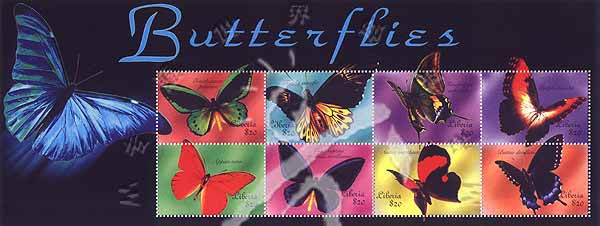 蝴蝶(2),红翅尖粉蝶、喙凤蝶等小版张(8票)