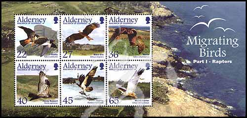 迁徙鸟类—猛禽,鹗(鱼鹰)、黑鸢等小全张(6票)