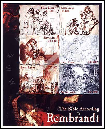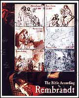 十七世纪荷兰画家伦勃朗以《圣经》故事为题材的艺术画作小版张(含6票)