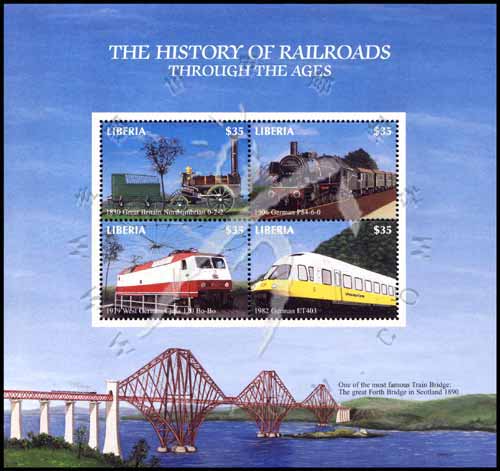 火车的发展历史,德国P84-6-0和ET403、西德、英国等国的火车及苏格兰著名的火车大桥小版张(含4票)