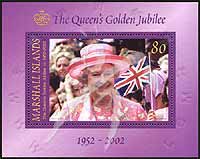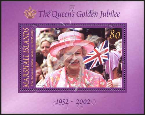 伊丽莎白二世登位50周年,女王和举英国国旗的人民小型张