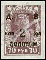 Sc#67 俄罗斯士兵无齿票加盖改值2k (5-2) 1枚