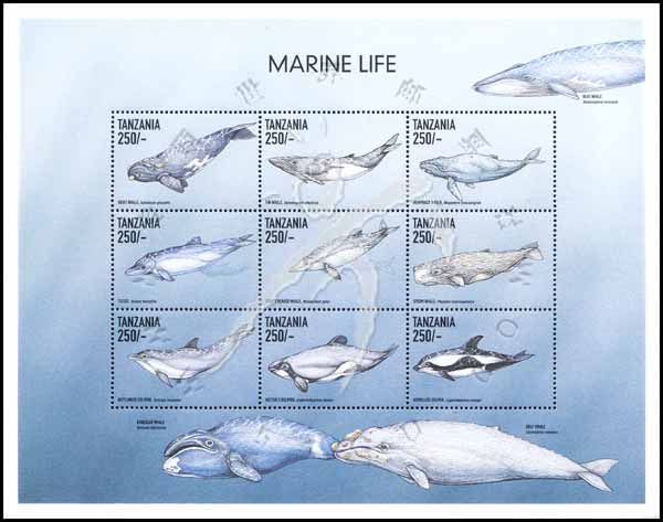 海洋生物—鲸,露脊鲸、海翁、大翅鲸、抹香鲸等小版张(9票)