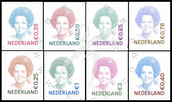 普票,荷兰女王贝娅特丽克丝不干胶自贴票8全