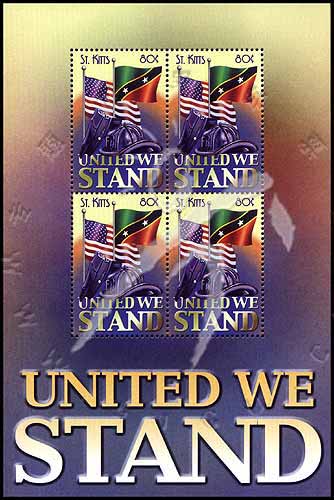 团结起来站直了(为9.11事件发行),美国星条旗和圣基茨国旗等小全张(4票)